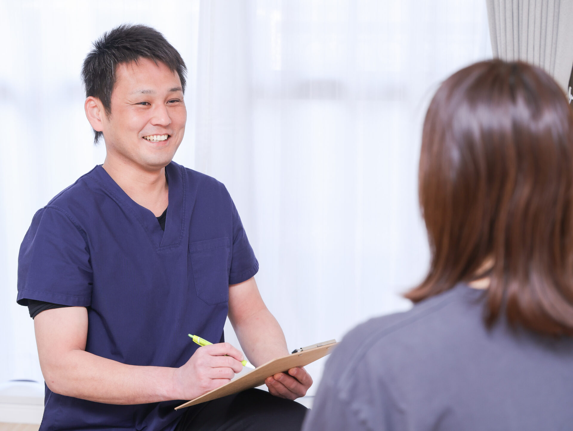 お身体に痛み・不調などのお悩みがある方は丁寧なヒアリングを行いお客様の身体の状態を把握いたします。痛み・不調はいつから?どこが?どういう動作?日内変動は?など細かく聞き取りして痛みの原因を特定していくためにもヒアリングはとても重要となります。