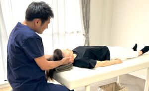 を中心に、首に負担をかけない施術を行いました。